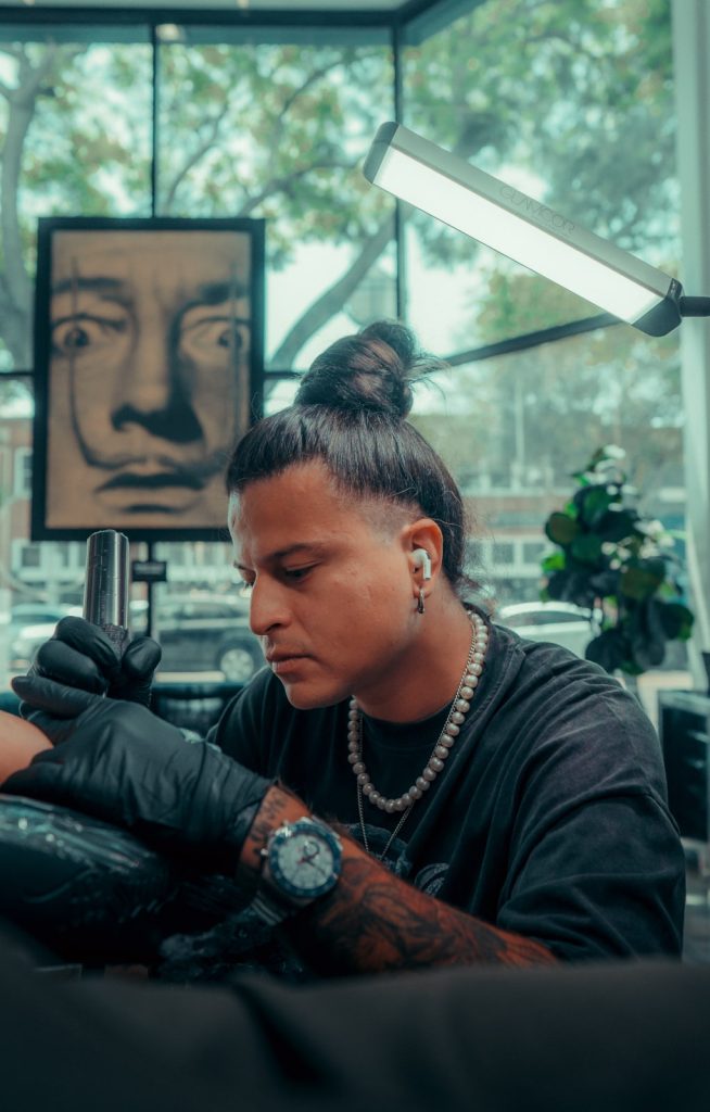 His creative journey has taken him through various disciplines, including music and sculpture, all of which have expanded his artistic perspective. It was in Spain that he discovered tattooing—a practice that quickly became his passion and the perfect medium to blend technical skill with emotional expression.