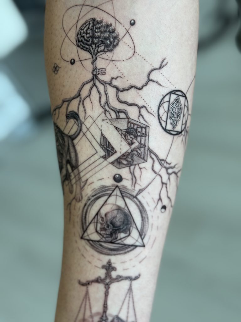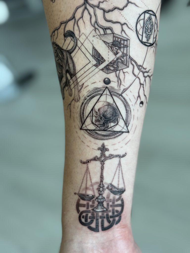 Born in Colombia, my artistic path began long before I ever held a tattoo machine. From an early age, I was drawn to creative expression, exploring disciplines such as music and sculpture, which shaped my sensitivity, discipline, and vision as an artist. My Colombian roots became a constant source of inspiration—deeply connected to symbolism, spirituality, and storytelling. It was during my time in Spain that I discovered tattooing, a medium that immediately resonated with me and allowed me to merge technical precision with emotional depth.